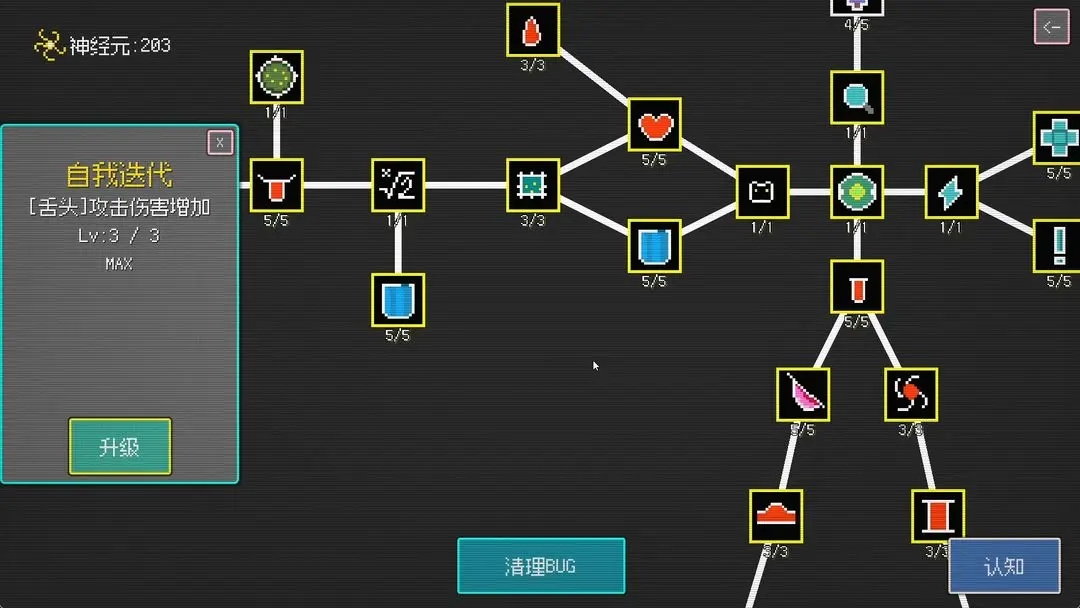 2、优先选择算力高的Bug吞噬,快速提升等级以解锁神经树节点。