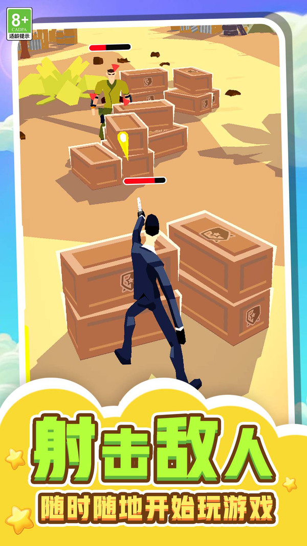 1、点击移动即可滑动你的瞄准镜,仔细的预判敌人的移动轨迹,松开你的手指即可畅快射击。