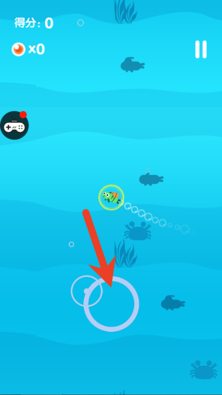 2、使用手指滑动屏幕,控制整个小青鱼群的移动方向,引领鱼群协同前进;