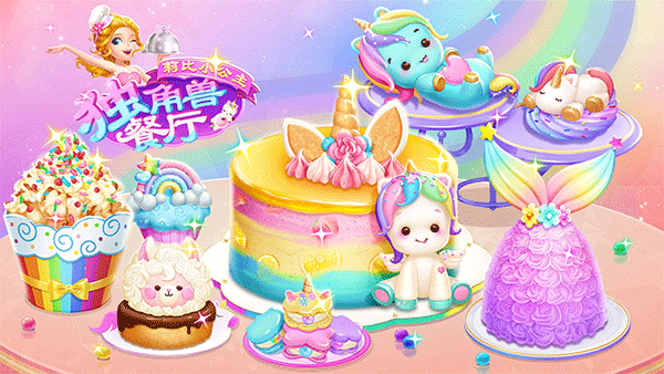 童话风视觉呈现:采用色彩鲜艳的 Q 版卡通画风,独角兽主题元素贯穿整个餐厅场景,甜品造型精致、角色形象可爱,不管是餐厅的梦幻布置,还是美食的精美造型,都充满童话氛围,契合低龄玩家的审美。