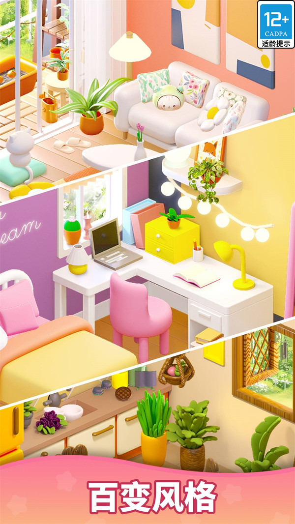 2、自由装饰:合并两个相同的对象后,您将获得用于解锁和升级每件家具和房间角落的工具,翻新和粉刷房屋或豪宅.