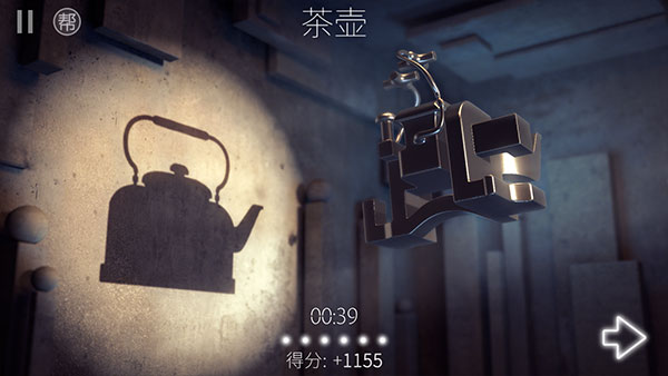 光影解谜为主:游戏核心玩法是通过单指滑动 360 度旋转空中悬浮的抽象 3D 物体,双指操作还能调整旋转轴心,让物体在聚光灯下投射出符合要求的清晰剪影。比如教程关卡需转出兔子投影,后续关卡则会解锁动物、器具、交通工具等多种目标剪影,且高级关卡还需同时操控多件物品,调整相对位置才能拼出正确投影。