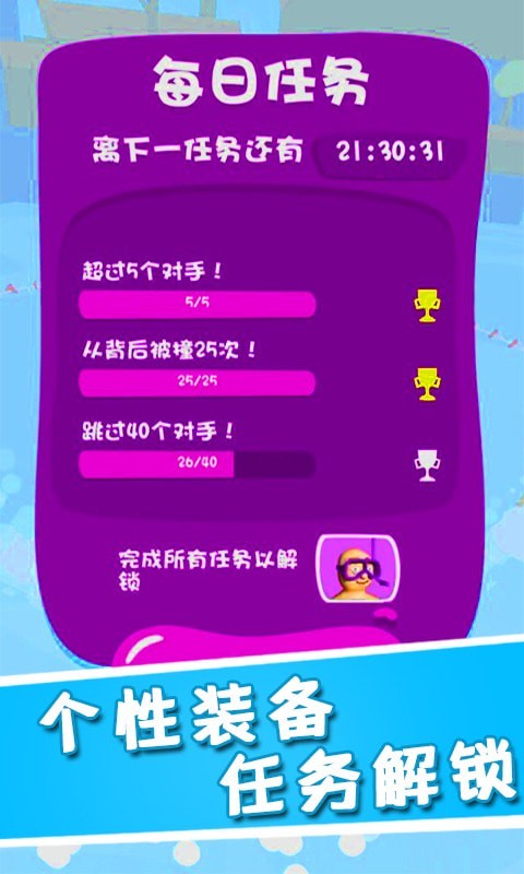 也能迅速掌握不同的任务,得到相应的特殊奖励,最终成功的只能是一个人。每日任务和成就系统为你提供丰厚奖励,助你更快解锁新内容。