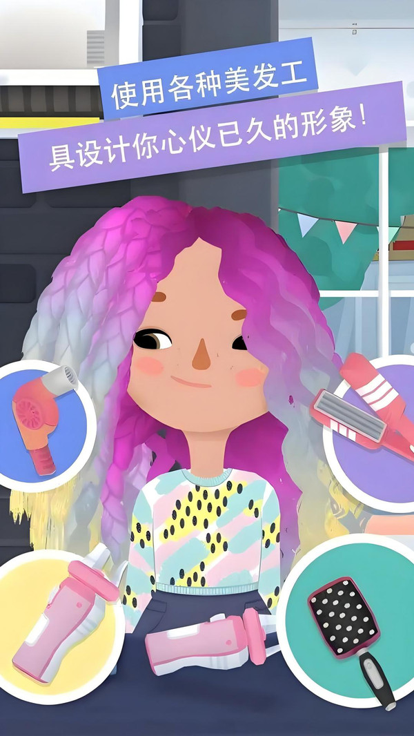 托卡美发沙龙3是一款时尚感拉满的模拟手游!不管是可爱俏皮的甜妹发型,还是个性吸睛的非主流造型,都能随心打造!游戏提供几十种自定义装扮,你可以自由挑选角色,随机搭配发型与服饰,解锁无穷乐趣!拿起专业美发工具,尽情发挥创意:丝柔顺滑的直发、极富弹性的卷发、蓬松氛围感的大波浪全都能实现。更首次推出新潮非洲式发型,超级卷曲的发质既能打造饱满蓬松卷发,也能设计不烫不染却极具个性的自然款,轻松拿捏各种潮流风格!