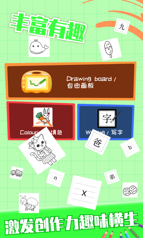 《画图大师》拥有海量精美的填色图案,涵盖动物、汽车、数字等多种类型,让玩家可以长时间沉浸在创作的乐趣中。游戏特别注重儿童教育功能,通过绘画活动促进孩子思维、感知和观察能力的全面发展。游戏提供了丰富的创作工具,玩家可以随心所欲地画出想要的内容,从简单的涂鸦到复杂的艺术作品都能轻松实现。游戏还支持作品保存和分享功能,让玩家可以记录自己的创作历程,与朋友分享艺术成果。
