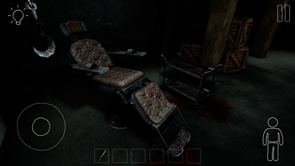 沉浸式恐怖场景:场景以阴森房屋为核心,搭配血迹墙面、昏暗灯光等细节,再加上脚步声、门窗异响等动态音效,营造出强烈的恐怖氛围。随着剧情推进,玩家会从初始囚笼房间,逐步探索到有壁炉的房间、户外等区域,每个区域都有专属的机关和隐藏线索,比如墙板玻璃柜里的钥匙、桌子下的橡胶手套等。