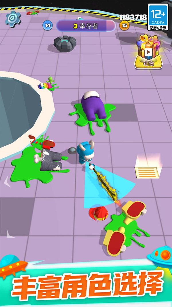 太空大乱斗善用场景中的机关进行躲避或暗杀,出其不意的击败对手。
