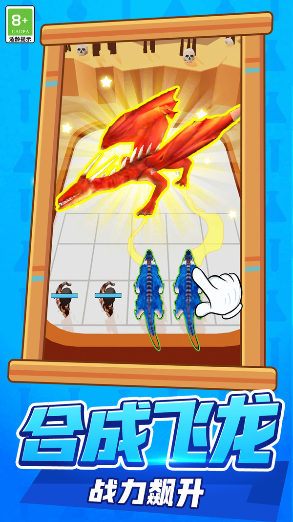 加入驯龙大冒险开启你的奇幻驯龙之旅!作为一款超上头的合成向休闲游戏,你将在闯关过程中收集各类飞龙与射手,通过合成进化打造强大战力,带着你的空中军团驰骋大陆,迎战强敌!游戏内飞龙种类超丰富,每一次合成都可能解锁新惊喜,尽情探索养成的乐趣。带着你的专属军团登上竞技台,凭借智谋布阵击败对手,赢取丰厚金币与稀有皮肤。在奇幻大陆书写属于你的驯龙传奇,快来开启冒险吧!