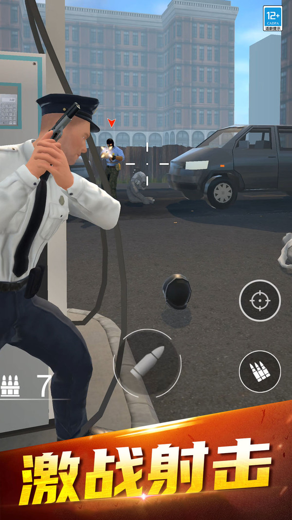 4、策略博弈:除了直接的射击战斗,玩家还需要运用策略,如设置陷阱、利用地形等,来智斗罪犯。