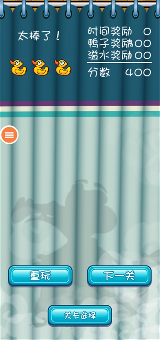 游戏引入"挑战模式",对关卡难度产生颠覆性的变革,会给您带来更多的乐趣!比如挑战模式中的"上下颠倒",所有物质的性质也是上下颠倒的,例如水往上流。以及"转换鸭子"挑战模式,此关的鸭子会变成另外一种鸭子。更多挑战模式期待您的挖掘!