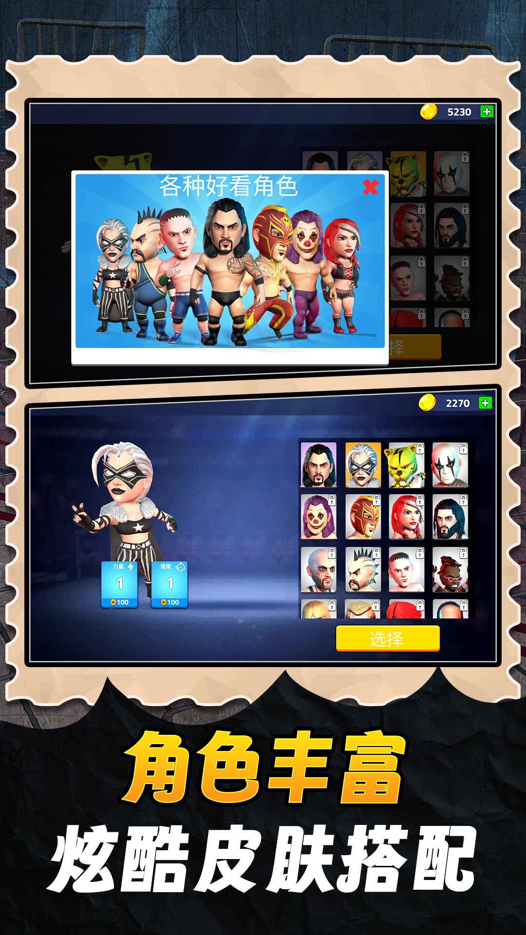 1.采用鲜明的卡通美术风格,塑造了十余名造型各异、性格鲜明的拳击手角色,营造轻松诙谐的擂台竞技氛围。
