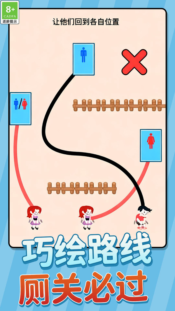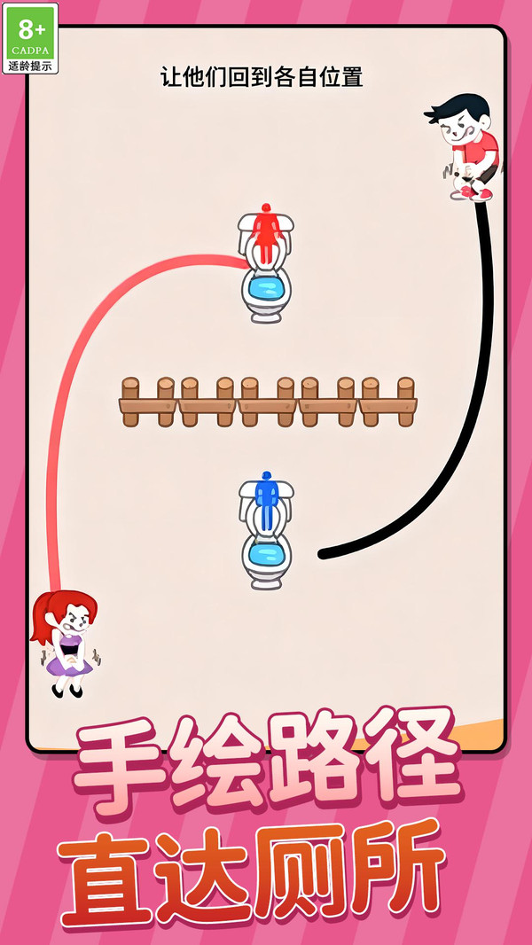 4、专属解压音效加持,画线时的顺滑音效、找到厕所的欢快提示音,全方位舒缓日常压力,治愈感爆棚。