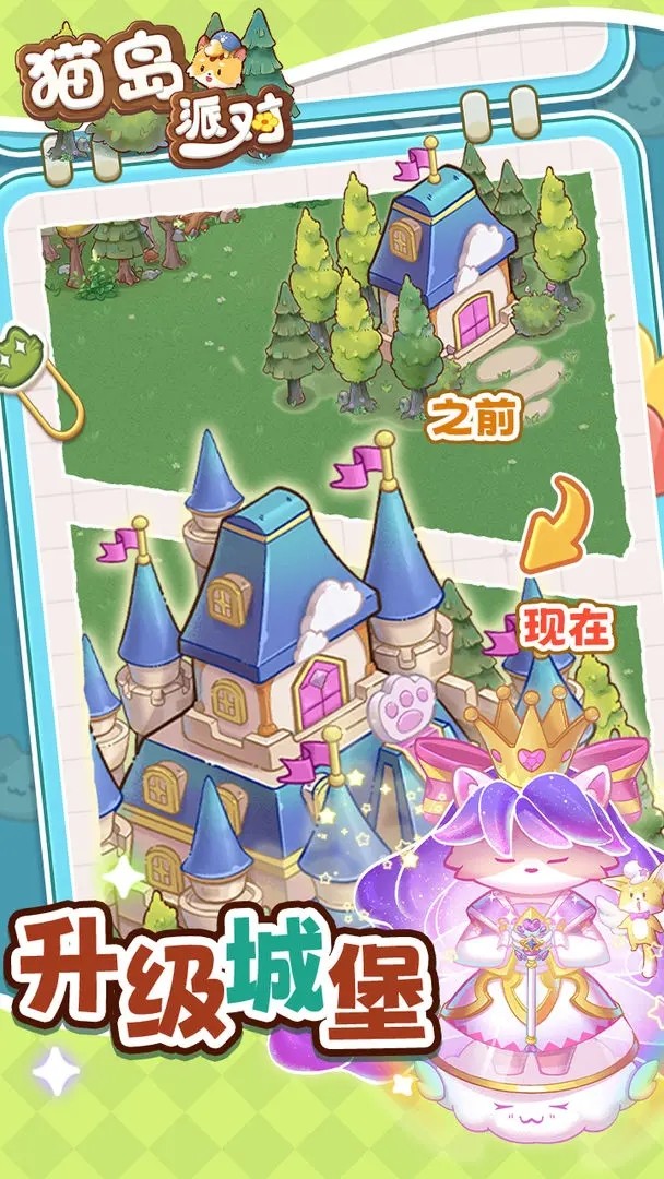 猫岛派对是一款精彩的模拟建造手游,在这里可以打造自己的猫猫城堡,自由建设岛屿,内部生产不同的设备,逐步的扩建升级城堡,打造出梦幻之中的效果模样,不断解锁有趣的剧情故事内容,招募更多的猫猫伙伴们,趣味多多!
