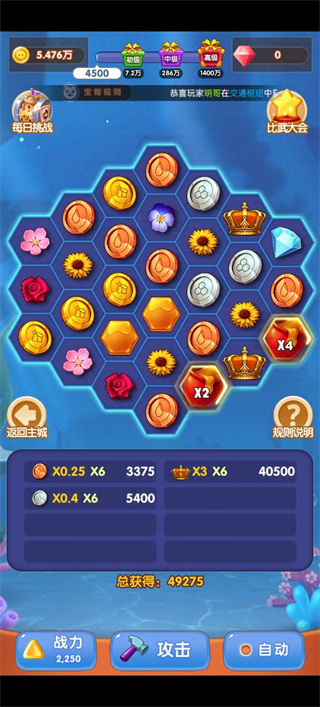 2、尽量连续消除多个物品,这样不仅可以获得高分,还能触发主角的技能,增加攻击力。