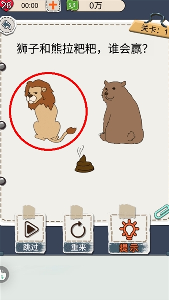 3.进入关卡实例,根据命题要求执行交互操作(示例:在多个选项中识别并选择“狮子”)。