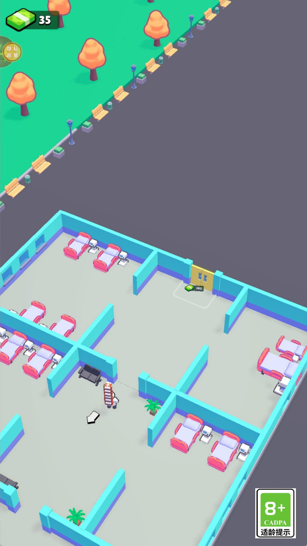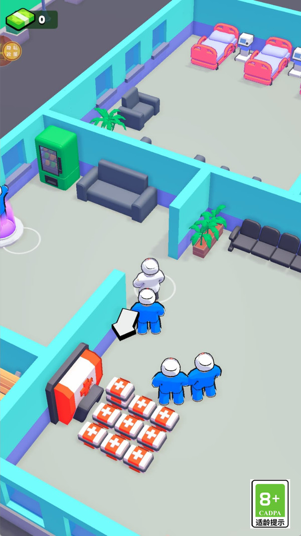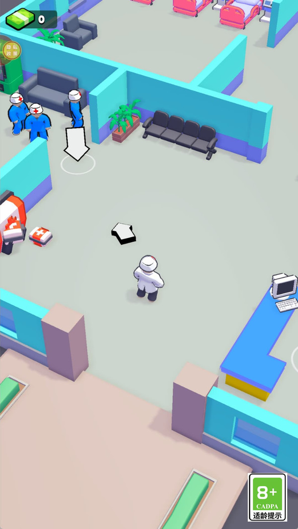 3. 患者入院后需要根据病情安排到相应科室,通过迷你游戏完成诊断与治疗流程以获得医疗费用收入。