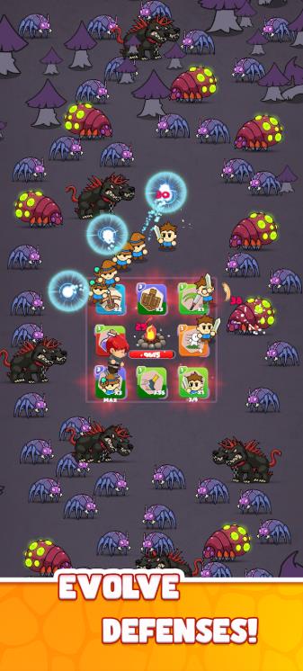 3、在战斗中获取资源并消耗它们进行升级,提高产能、扩大范围、提升攻击力,以应对更强大的敌人浪潮。