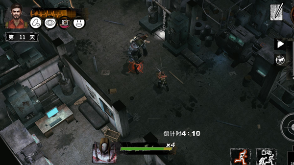 2、体力:体力为零时玩家战死。体力只有被攻击时才会流失,脱离战斗则自恢复。制造的攻击道具则可以更快击杀僵尸,也间接影响体力流失。