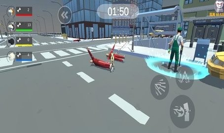 狗狗的控制对象是流星锤,需要掌握相应的力度,精准操控才能让柴犬按照你的意愿行动。游戏还加入了多种道具和装备系统,比如加速靴、弹簧装置等,帮助玩家更快蓄力冲刺。最有趣的是角色反转设定,狗狗翻身成为主人,而主人则沦为宠物,一旦操作失误,主人就会被像流星锤一样甩出去,在街道上翻滚,引发一系列搞笑场景。