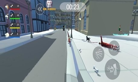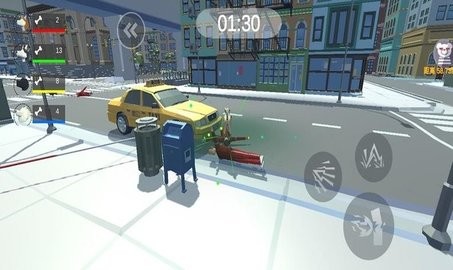 恶搞玩法充满趣味性,遛狗过程中周围的房屋会被无情摧毁,破坏效果夸张又滑稽。游戏贴心地设计了狗骨头道具,使用后能让狗狗暂时听话,避免主人陷入太过尴尬的境地。但要特别注意,如果狗狗看到感兴趣的东西,比如飞盘或猫,它会毫不犹豫地把主人甩向高空,这种突发状况让游戏充满刺激与挑战。