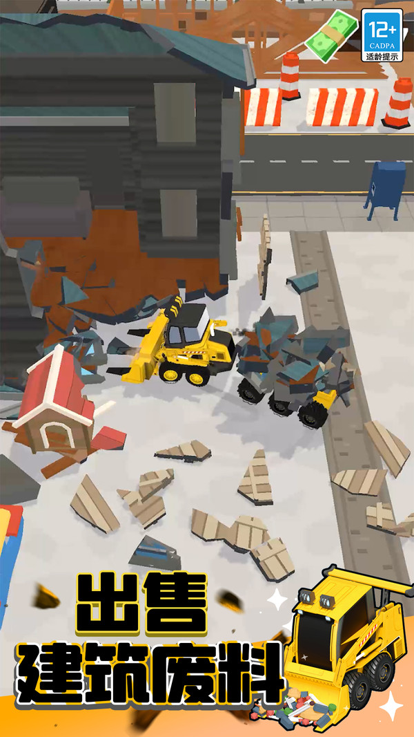 ·触屏操作:玩家可以通过触摸屏幕来控制挖掘机的移动和操作,通过选择合适工具来拆除不同房屋