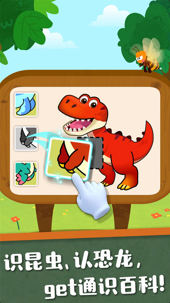 ·get百科:拥有锋利尖角的三角龙、长着短小前肢的霸王龙……拼,高效记忆恐龙的外形。霸王龙爱吃什么?要给小腕龙喂食树叶还是鱼肉?通过益智互动,宝宝就能直观地get恐龙食性!课程内容涵盖古生物、地理、天文等多个领域,拓展孩子的知识面。