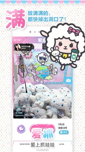 丰富的社交互动功能,让抓娃娃过程更加热闹有趣,围观群众可以通过弹幕为你加油打气,展现你的抓娃娃实力。