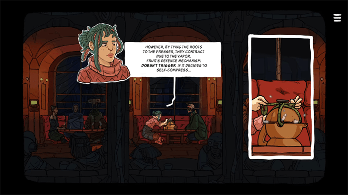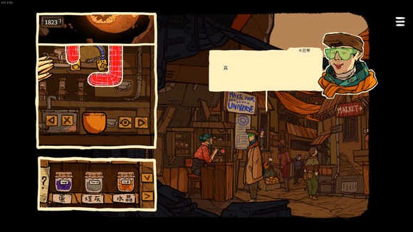 视觉上采用欧洲地下漫画家打造的手绘风格,每一帧画面都极具艺术感。蜿蜒的小巷、破旧的贫民窟、摇摇欲坠的茶馆等场景,都通过细腻笔触营造出荒诞又充满故事感的氛围,搭配奇特的角色设定,让整个木星殖民地充满奇幻色彩。