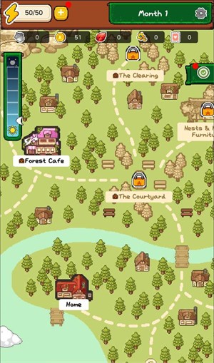多场景探索:点击游戏内的 map 按钮可打开地图,自由前往森林、河流、草原等不同场景。每个场景都藏着独特互动元素,玩家既能在场景中搜寻任务道具,也可能偶遇意外事件,整个探索过程没有时间压力,节奏十分舒缓。