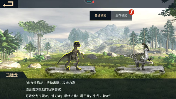 双线生存挑战:选择迅猛龙(肉食,高攻速杀)或副栉龙(草食,高防生存),体验截然不同的生存策略。