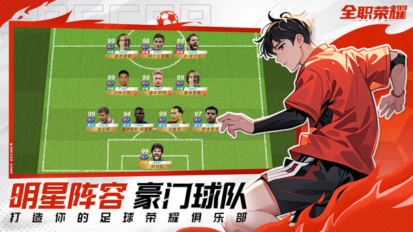 2、【巨星招募,培养打造你的专属巨星!】球探网络、转会市场招募巨星,专业比赛训练、各类赛场技能、丰富足球装备,全面提升巨星实力。球员能力值可选择式培养,打造属于你自己的特色巨星,叱咤赛场!