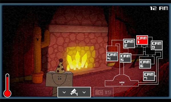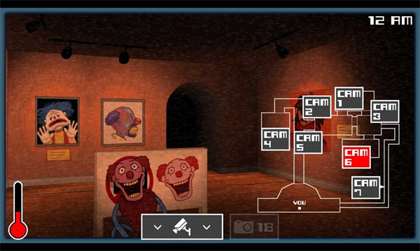针对性对抗怪物:游戏中的怪物各有专属进攻路线和应对方式,策略性极强。比如方块脸气球男孩会沿 CAM1、CAM2、CAM5 路线进攻,在 CAM5 消失后要在走廊用相机驱赶;小丑出现在走廊时绝不能用相机,否则会被立刻击杀;4 点后还会刷新金蛋和多眼怪,金蛋会让停留过久的玩家被跳吓损失体温,多眼怪则需多次用相机驱赶且无法通过监控追踪。