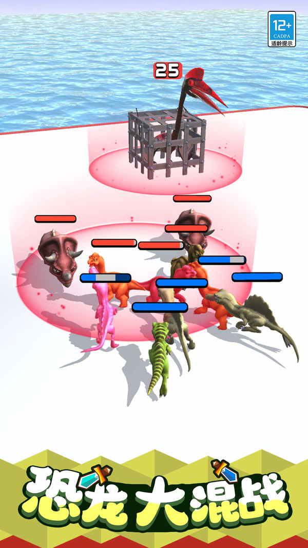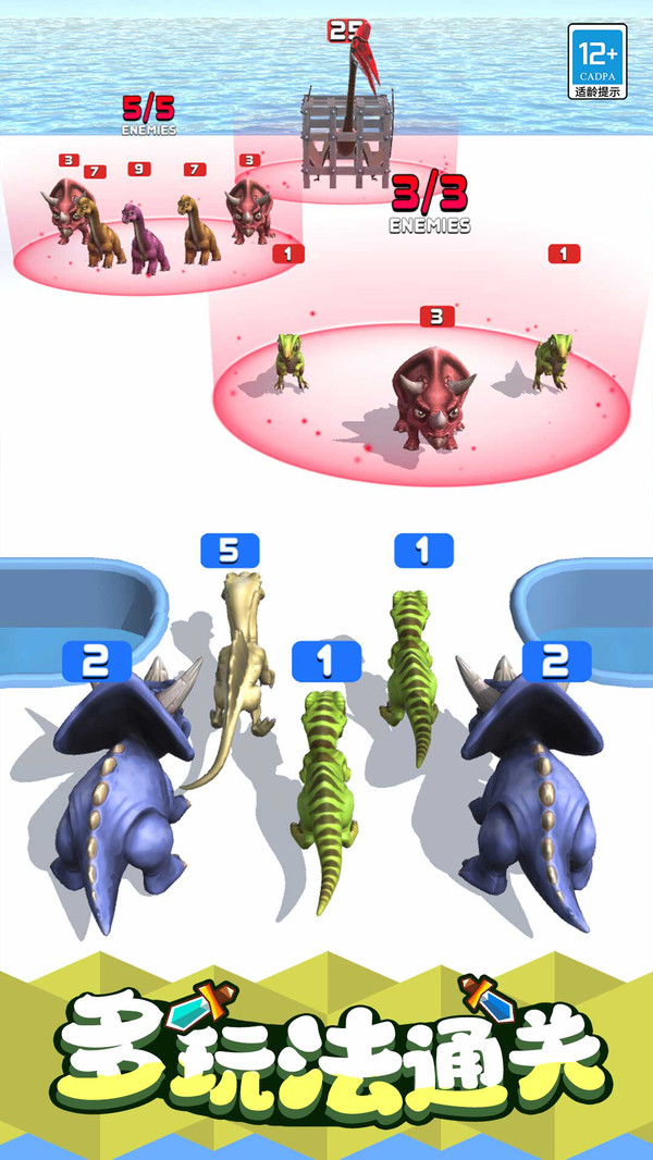 2、到达终点,但是战斗才刚刚开始,不要掉以轻心,你需要将已拥有的恐龙进行合成,帮助它们升级,获得更高的战斗力。