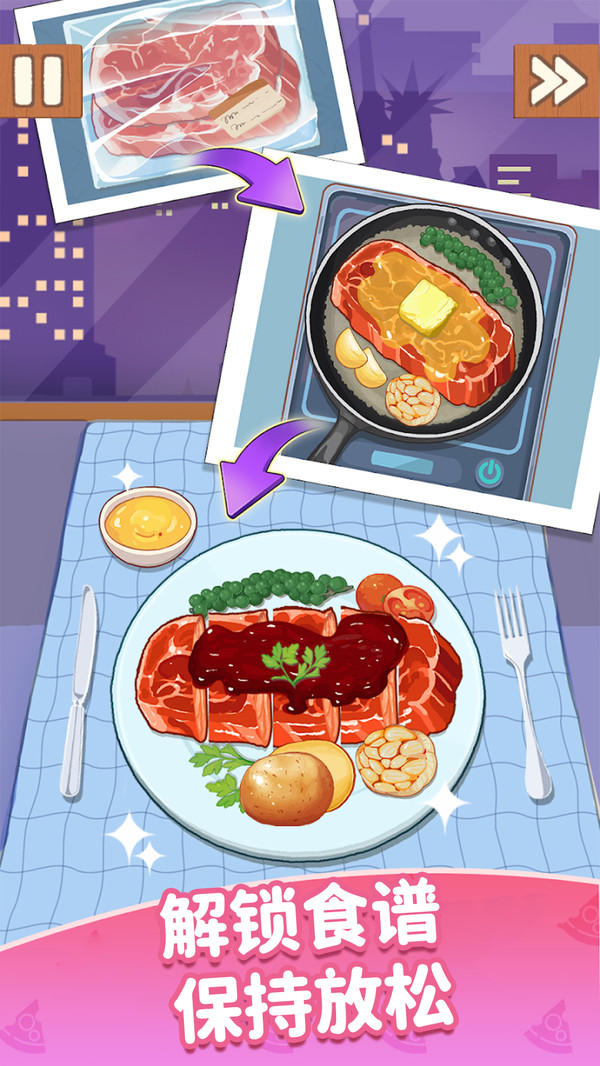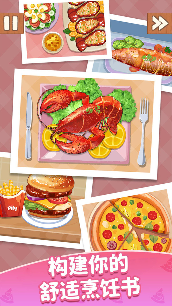 2.菜谱丰富多样:游戏涵盖中餐、西餐、甜品、饮品等多类料理,随着推进逐步解锁,满足你对美食制作与收集的全部欲望。