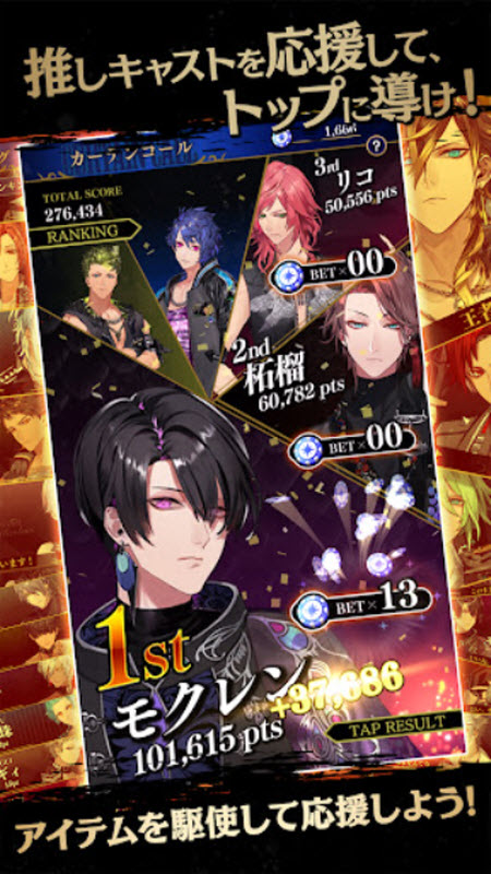 多线分支剧情:故事围绕 25 位背负过往的男性表演者展开,他们在表演餐厅中竞争、合作,背后藏着各自的秘密与矛盾。玩家以特邀来宾身份深入后台,选择支持不同表演者会推动剧情走向不同分支,比如调解偶像间矛盾能提升团队羁绊解锁集体舞台,支持单方则会深化该角色个人故事。剧情还融入羁绊与冲突等戏剧性情节,像苏哲因和黑曜吵架加入星巡,吉野独自练习出色却在集体练习中屡屡失败等,人物关系错综复杂。