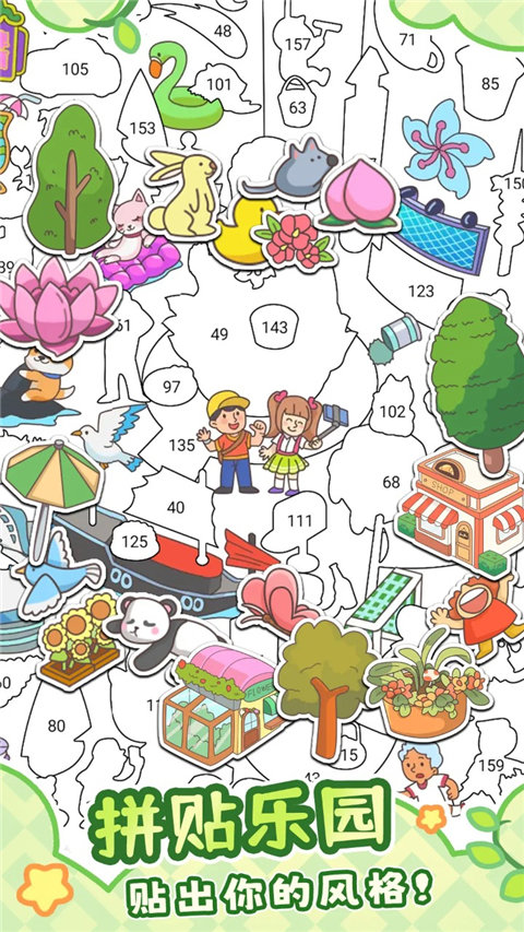 点击贴纸,游玩关卡模式时,点击碎片框内的贴纸,贴纸将会以真实大小呈现,可以根据大小比例去图中寻找它的大致区域。长按碎片可查看放大细节,双指旋转可调整碎片角度。善用"相似颜色筛选"功能能快速定位相关拼块。
