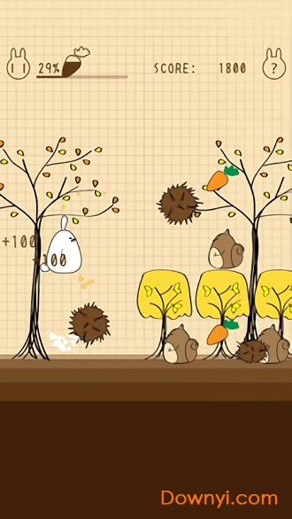 游戏控制很简单,只需轻按屏幕上跳跃和避开障碍物,如石块,池塘和尖峰。共有80水平以上四个阶段(春,夏,秋,冬),障碍随着季节的变化,保持游戏新鲜有趣。每个季节的障碍物都经过精心设计,春季有飘落的花瓣阻碍视线,夏季有湍急的溪流需要跨越,秋季的落叶会减缓速度,冬季的冰面则会让兔子打滑,这些细节大大增加了游戏的可玩性。