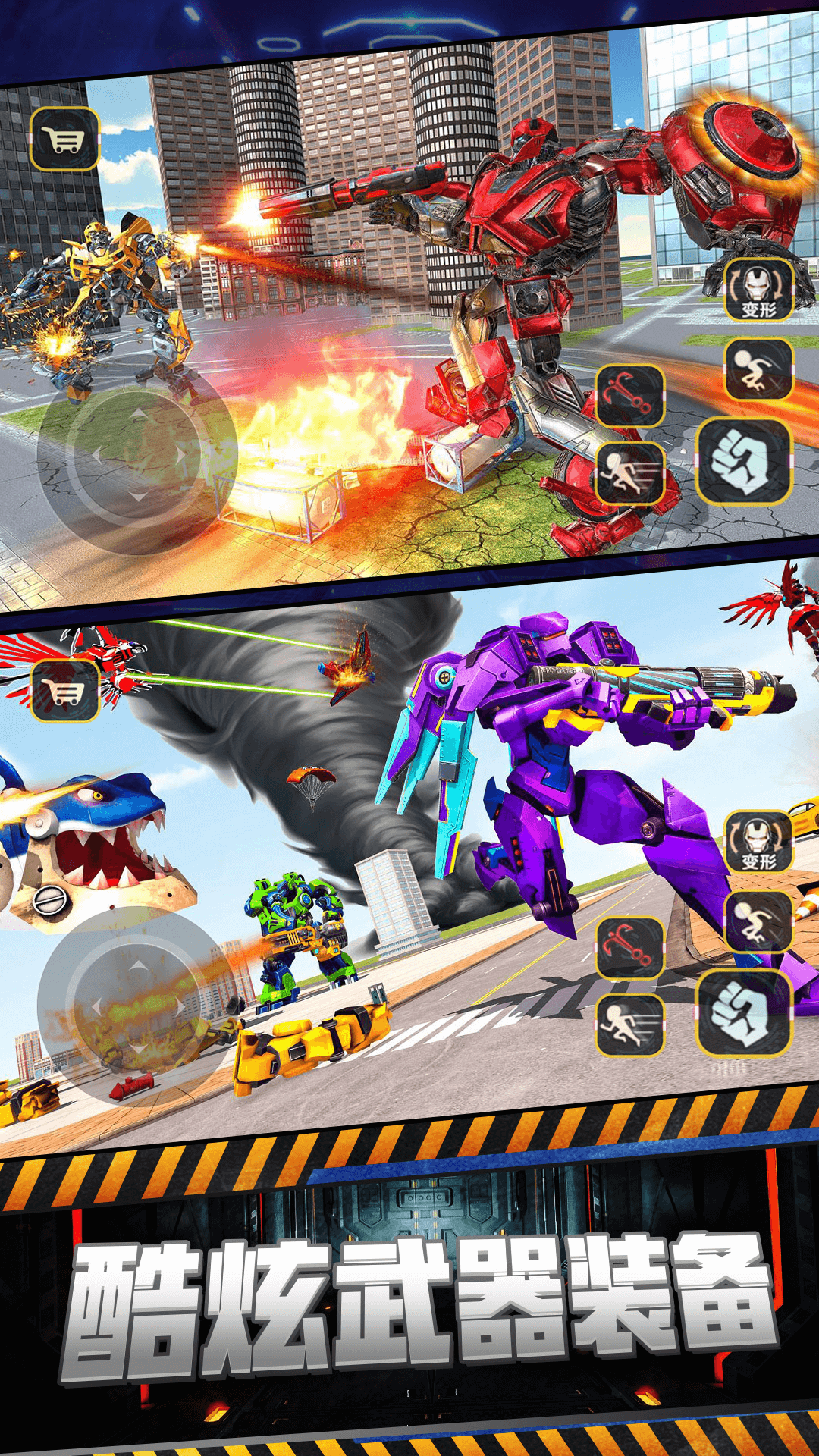 1、依据战局实时切换形态,远程作战时切换战斗机形态抢占制空权,近战对抗时用机器人形态发挥近战优势。
