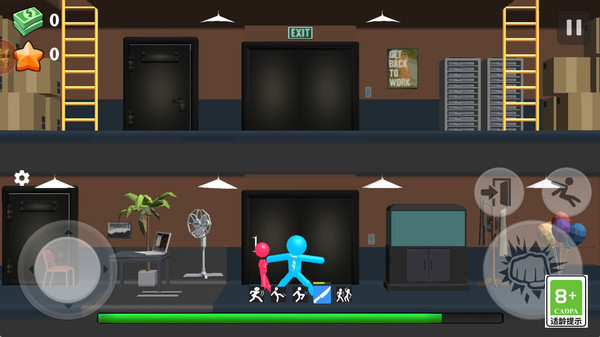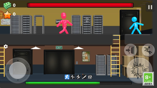 2、不同的火柴人角色可供选择,每个角色都有独特的技能和招式;