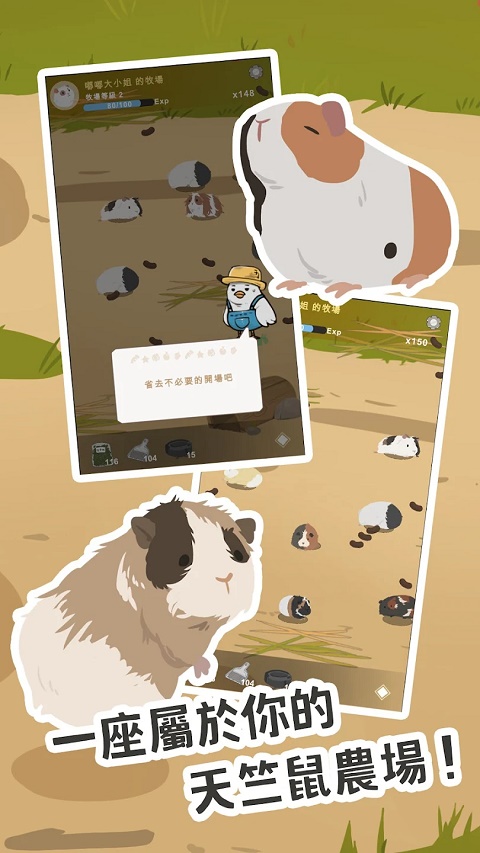 拟真饲养机制:融入了类似现实的饲养逻辑,天竺鼠有饥饿、健康等状态,若喂养不及时会影响其状态和产出。同时还有真实的天气系统,降雨、刮风等季节变化会对农场和天竺鼠产生一定影响,让饲养体验更具代入感。