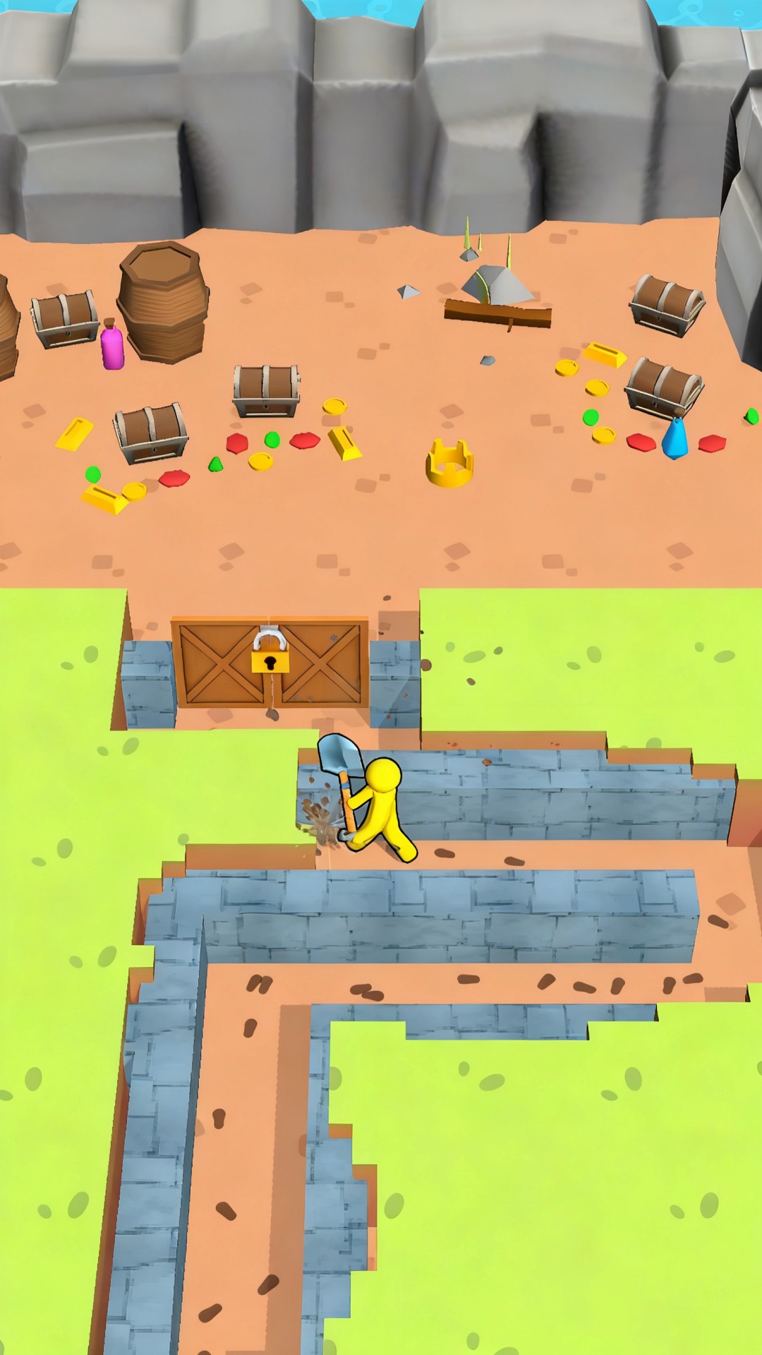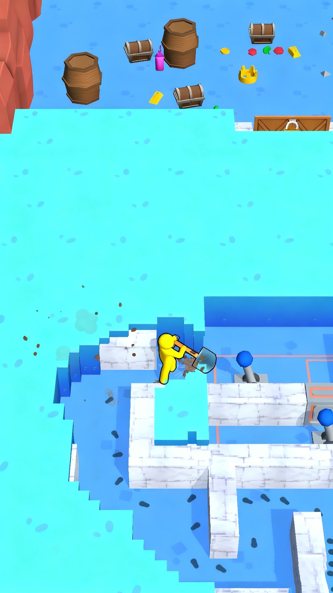 1. 通过点击或滑动操作来使用铲子等工具,谨慎地挖掘土层并移除障碍以开辟前进的道路。