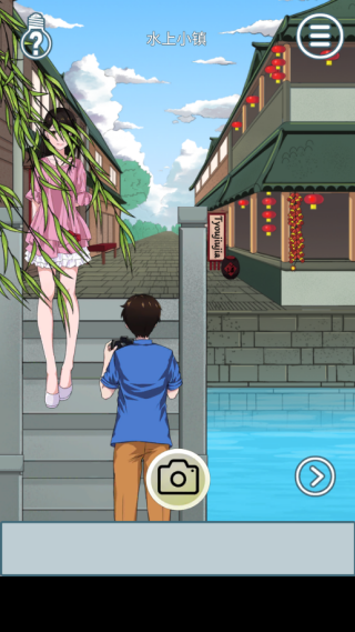 3、第一关的攻略是在柳条挡住女友的时候按下快门。