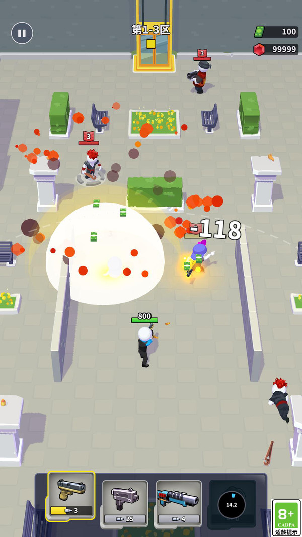 丰富武器系统:解锁并升级手枪、冲锋枪、霰弹枪、火箭筒等多种武器,每种武器都有独特威力和射击方式。