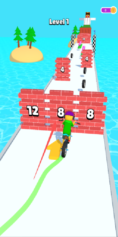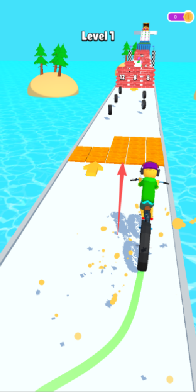 4、无需复杂操作骑上单车就能畅快开冲,赛道上的轮子是成长关键,持续收集即可让车身不断升级,解锁震撼视觉体验。