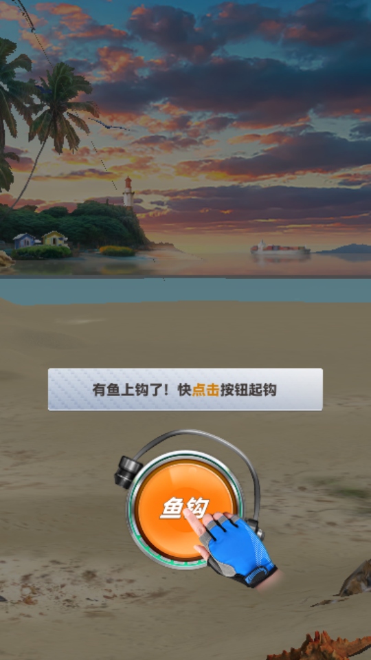 当鱼上钩后再次点击橙黄色按钮拉起鱼竿。