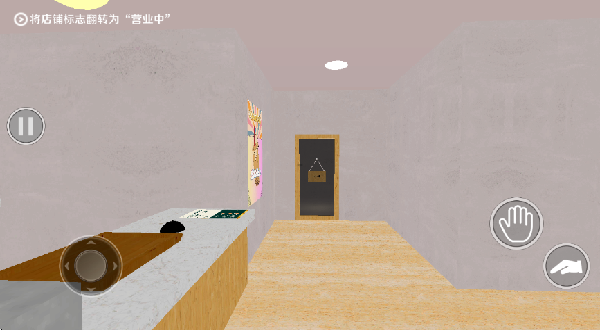 2、奶茶店开业了,你需要按照左上角的提示完成游戏中的任务,先去把标志设置为营业中。