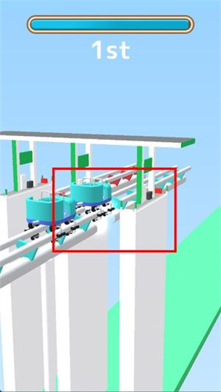 1. 这款游戏的核心是驾驶过山车在充满陡坡、回环和急弯的预制或玩家自制3D轨道上进行竞速比赛。