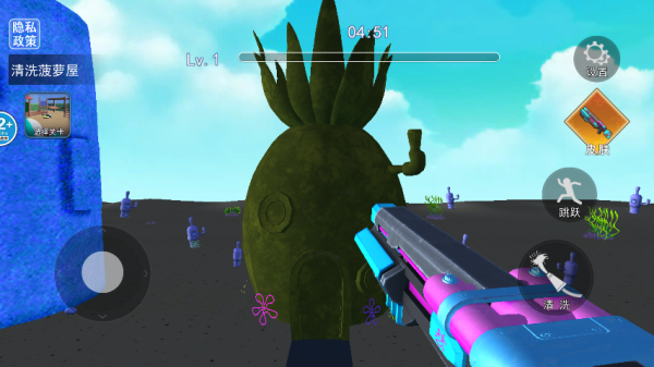 1、玩家可以通过手指滑动或点击控制角色在菠萝屋内移动,找到并清理各种脏污和杂物;