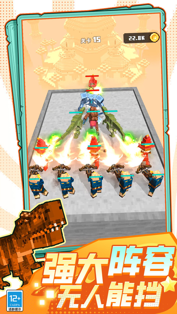 在恐龙究极进化里面你将组建一支由工匠、弓箭手与恐龙构成的专属军队,如今正是率军奔赴战场、开启热血对战的时刻。游戏玩法易于上手,但要打赢这场合并对决,你需精准放置具备不同属性的适配道具,凭借快速的反应与果断的决策抢占先机。充分运用战术思维,将恐龙、怪物、火柴人战士及弓箭手进行合理合并,解锁全新战力更强的战士,以此组建所向披靡的精锐军队。