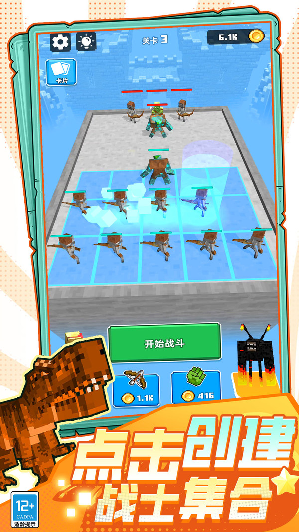 1、恐龙战士不仅拥有原始撕咬和冲撞能力,还可装备未来科技装甲,视觉冲击与策略深度并存。